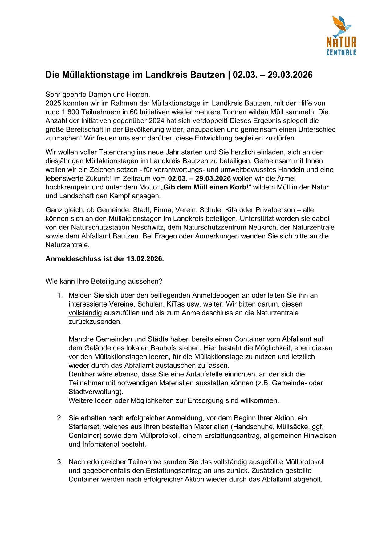 Müllaktionstage im Landkreis Bautzen vom 02.03. bis 29.03.2026 - Anmeldeschluss 13.02.2026