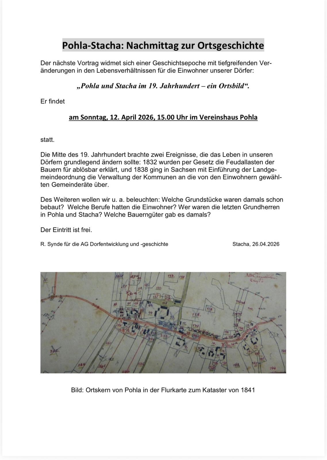 Pohla-Stacha: Nachmittag zur Ortsgeschichte